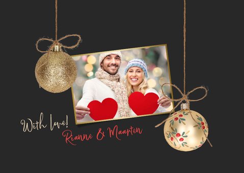 Kerstkaart gouden kerstballen 2024 colors | Kaartje2go