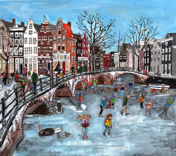 Buy Ice skating on the Amsterdam Canals Christmas Card Folded