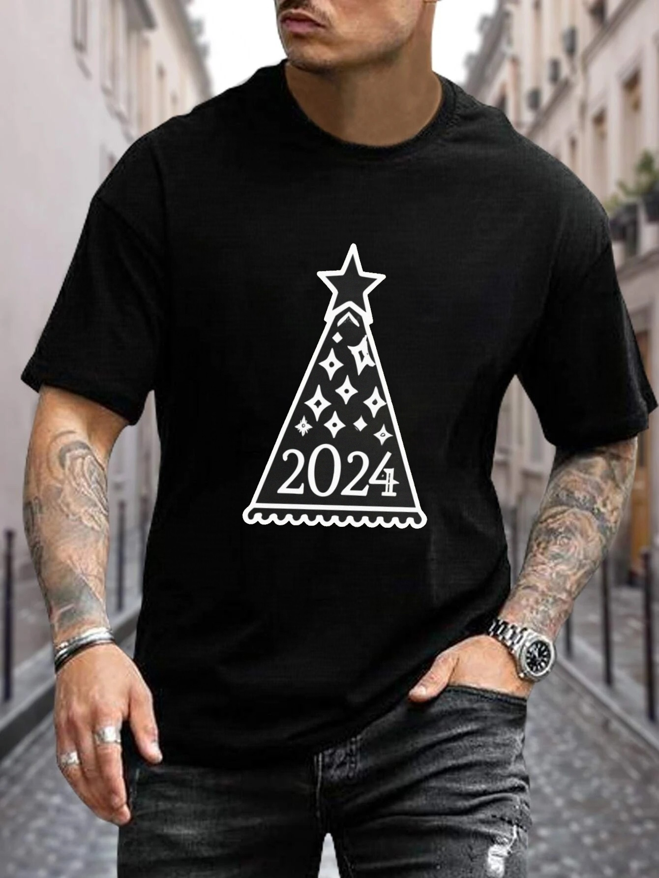 Plus Size Herren T Shirt Mit „2024“ Und Weihnachtsbaum